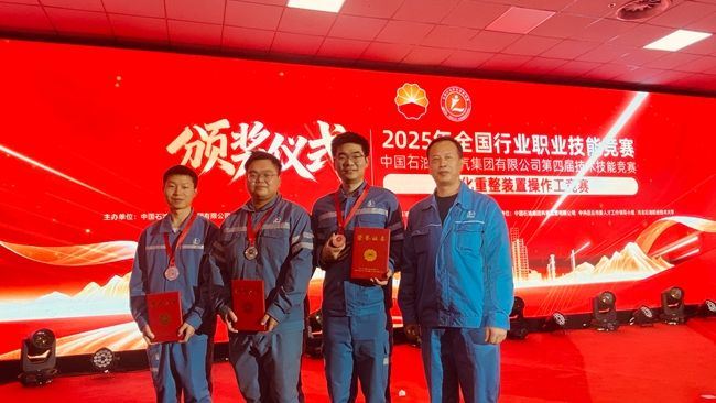 11月3日至5日,在河北任丘举办的2025年全国催化重整装置操作工竞赛中,公司选派的三名选手凭借扎实的理论功底、精湛的操作技能和稳定的临场发挥,首次实现参赛选手全员获奖“满堂红”,创下公司参加国家级赛事以来的历史最好成绩。其中,邓思宇斩获大赛银奖,杨彤、李章健双双荣获铜奖。